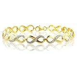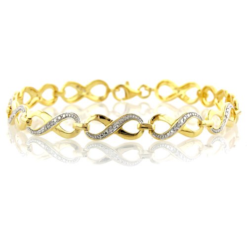 This show stopping bracelet is crafted of 14K plated sterling silver and features a stylish infinity link design. Bracelet is set with 25 diamonds totaling 0.15ct. Measures 7.5" in length.
