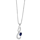Fashion pendant features blue oval and white round cut sapphires. Jewelry is crafted of sterling silver with rhodium plating.